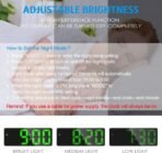 - ⏰ 【Large Display & Multi-function】Digital alarm clock with large LED display (6.3″x0.7~1″x2.36″), which lets you check the time clearly at a glance even it is far from you. Our desk clock with 5 mode: clock mode, date mode, temperature mode, night mode (ON/OFF), alarm mode. The buttons on the rear are very self explanatory, so it is very easy to set up! The “colon” between the hour and minute display flashes continuously
