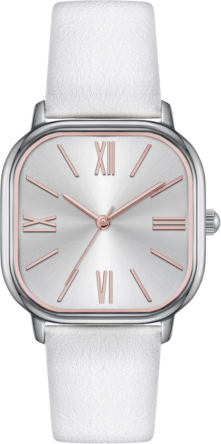 - Classic Fashion Design – Classic square case and silver-tone sunray dial with perfect smooth radian, Soft and durable white leather strap, very chic and stylish,Wonderful design dress watches for young ladies, girls and womens.